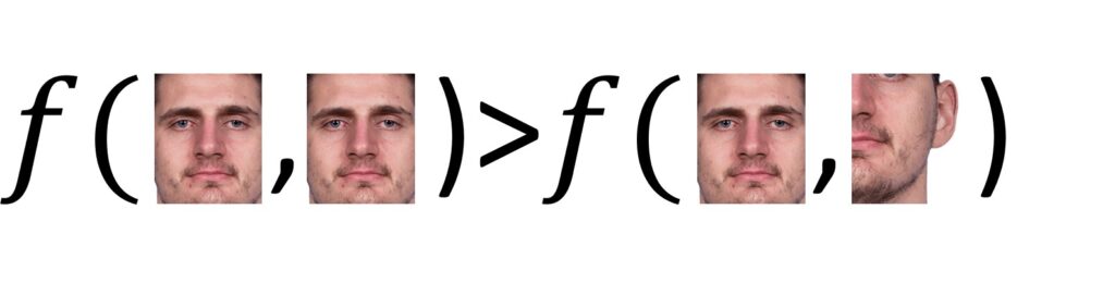 This leads us to a very interesting question. What exactly is the best match for the reference and current image? Well, to find the best match means to find the portion of the current image that is most similar to the reference image. That means we have to choose a similarity function \(f \) between the reference and the original image. This was used in template matching. In the following example, we can see that the similarity between the first two images should be larger than the similarity between the second two images.