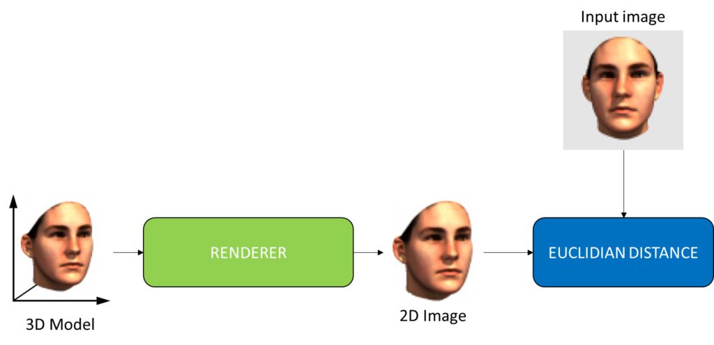 We take the 3D model render it into a 2D image and compare it with the input image using Euclidian distance, or the L2 norm (Figure 12).