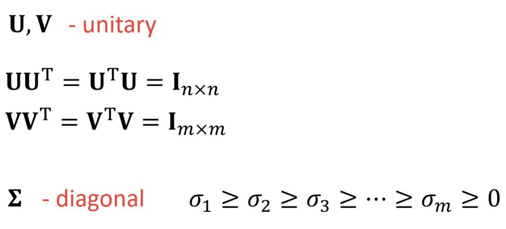 $$ A= U\Sigma V^{T} $$