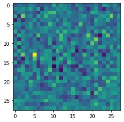 Before proceeding further, we will just do a sanity check. We will initialize the generator object. Next, we will pass the desired input and we will plot the fake image produced by the generator. Obviously, the weights of the generator are still randomly initialized, so the output image represents noise. The data from the generator are in the form: \(batch \times channel \times height \times width \). Therefore, to be able to plot the image, we will .squeeze(0) the generated tensor two times.