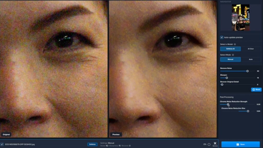 DeNoise AI is a dedicated plugin for noise removal. It’s able to remove noise and recover details from images taken in any light, at medium and high ISO. The plugin uses AI technology to distinguish between noise and details and removes noise without smudging.