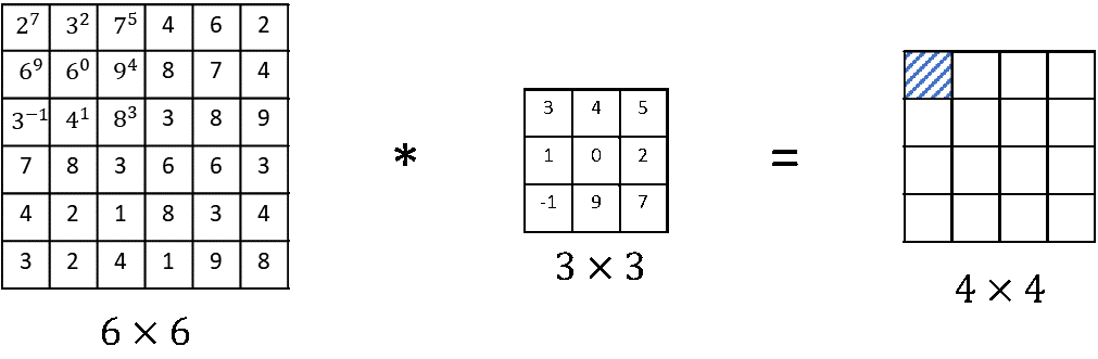 | $$ n\times n $$ | $$ f\times f $$ | $$ p $$ | $$ s $$ | $$ \lfloor \frac{n – f + 2p}{s} \rfloor +1 \times \lfloor \frac{n – f + 2p}{s} \rfloor +1 $$ |